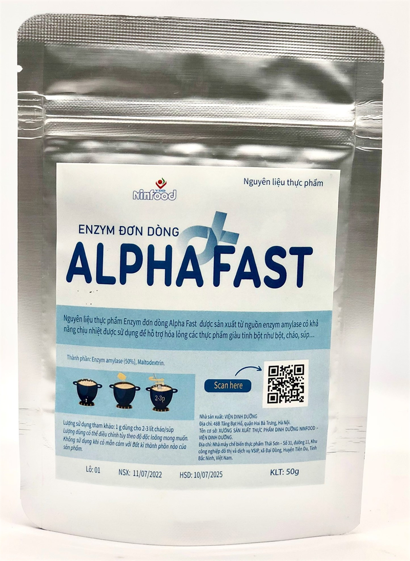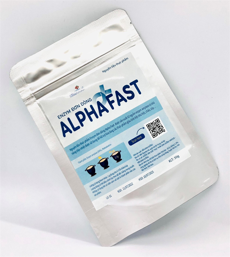 Enzym đơn dòng Alpha Fast là sản phẩm có thành phần chính là Enzym Amylase có tác dụng hóa lỏng các sản phẩm giàu tinh bột như bột, cháo, súp,…