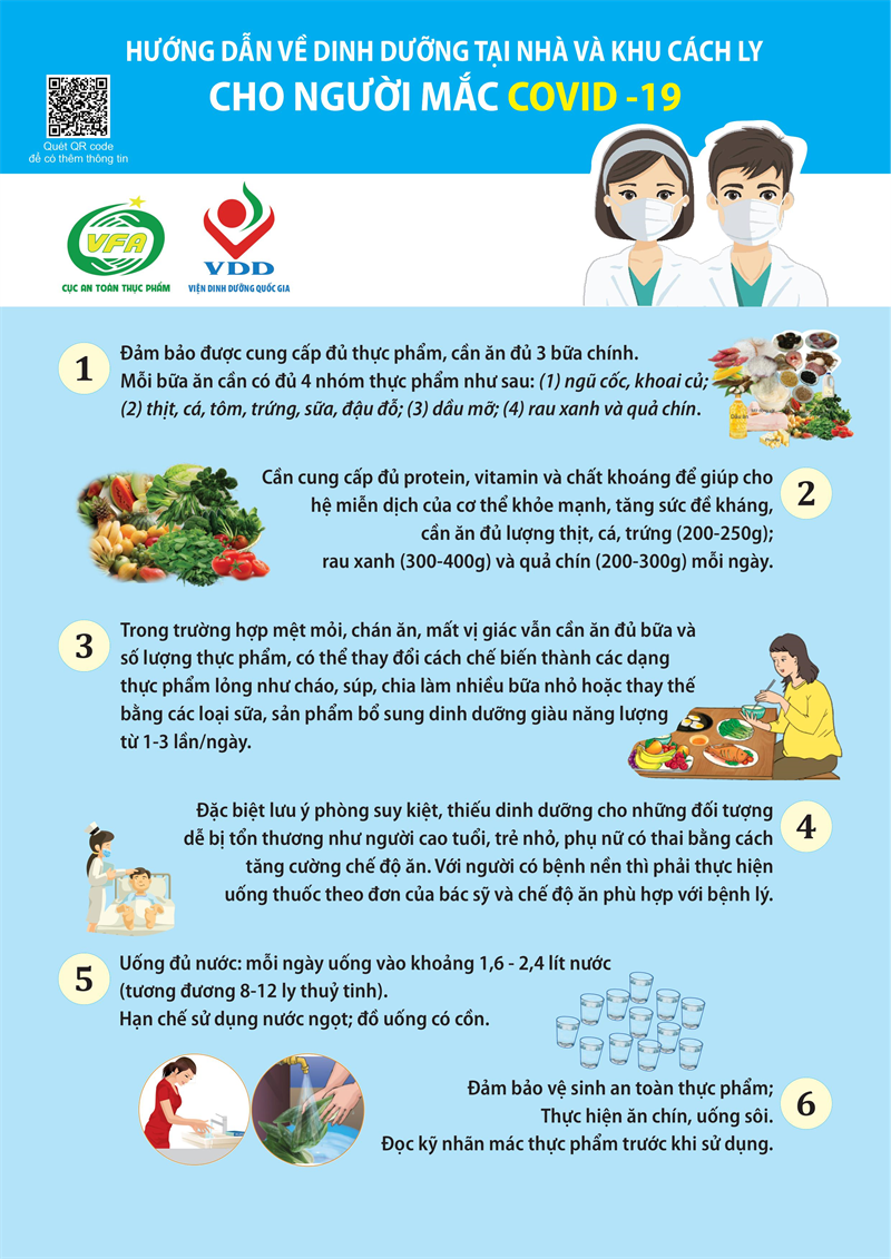 Cục An toàn thực phẩm phối hợp với Viện Dinh dưỡng Quốc gia khuyến cáo thực hiện đảm bảo dinh dưỡng tại nhà và tại khu cách ly cho người mắc COVID-19: