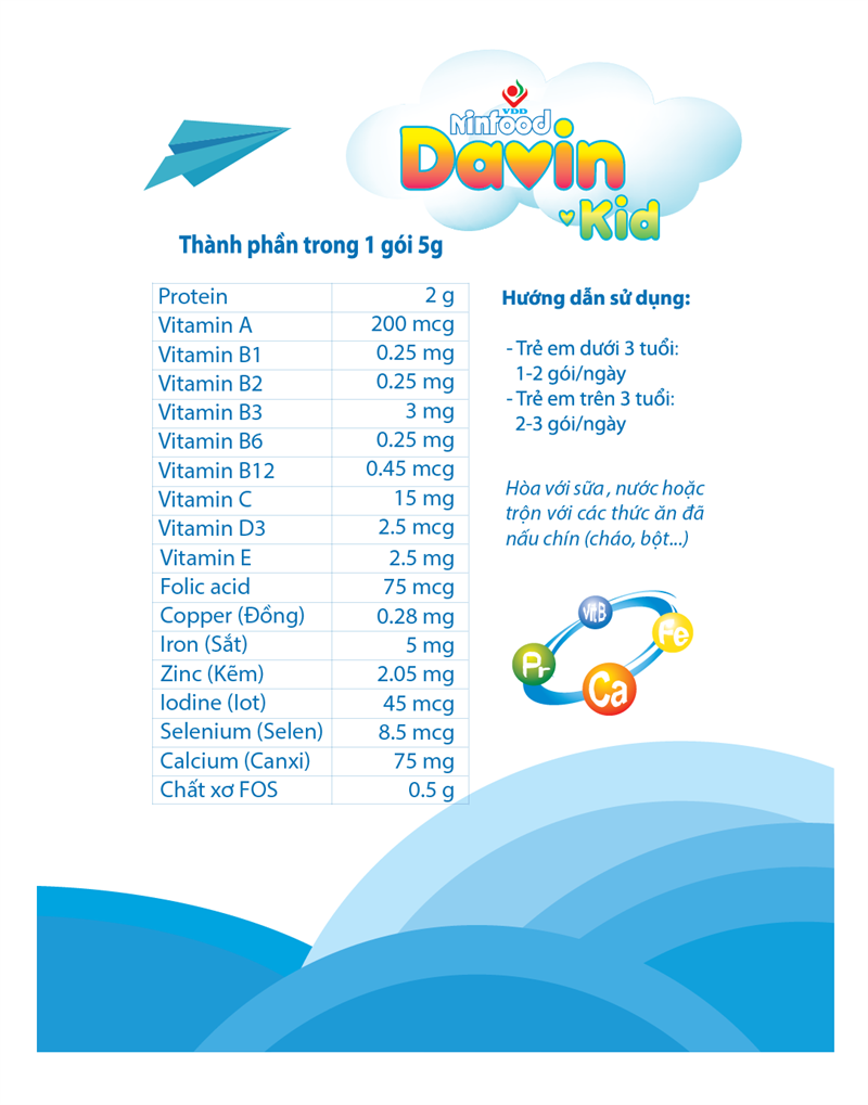 Dùng kèm thực phẩm khác: có thể hòa gói bột vào sữa lỏng, nước quả, nước ép... hoặc các loại thức ăn lỏng sệt khác.