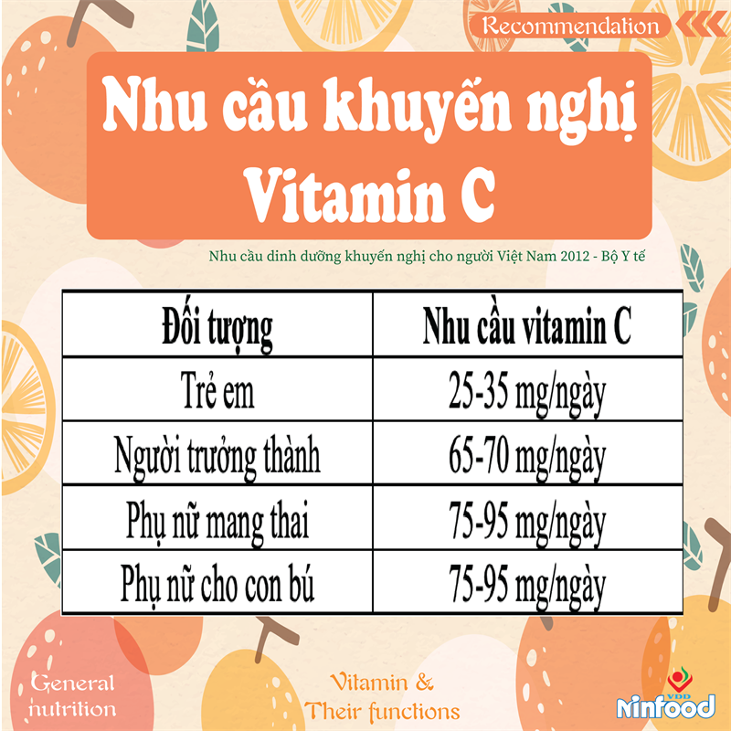 6. Nhu cầu khuyến nghị của vitamin C hàng ngày