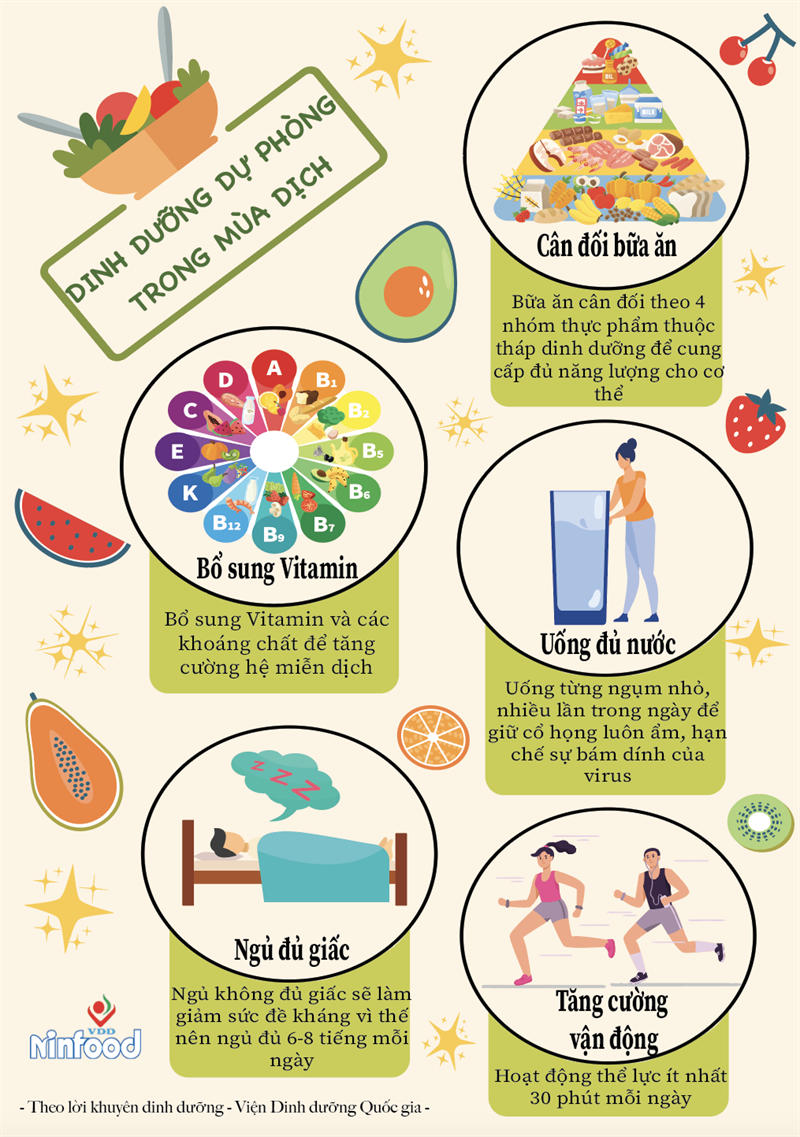 Tháng 3 năm 2021, một bài báo cáo ở Anh đã cho thấy những người có sức khoẻ yếu, sức đề kháng kém sẽ có nguy cơ lây nhiễm cao hơn so với người có sức khoẻ và sức đề kháng tốt. Vì thế, Bộ Y tế và hội Tiết chế Dinh dưỡng Việt Nam khuyến cáo ngoài thực hiện quy tắc chống dịch 5K (Khẩu trang – Khử khuẩn – Khoảng cách – Không tụ tập – Khai báo y tế) thì người dân nên “chủ động tăng cường sức đề kháng qua dinh dưỡng và vận động để phòng chống dịch hiệu quả”.